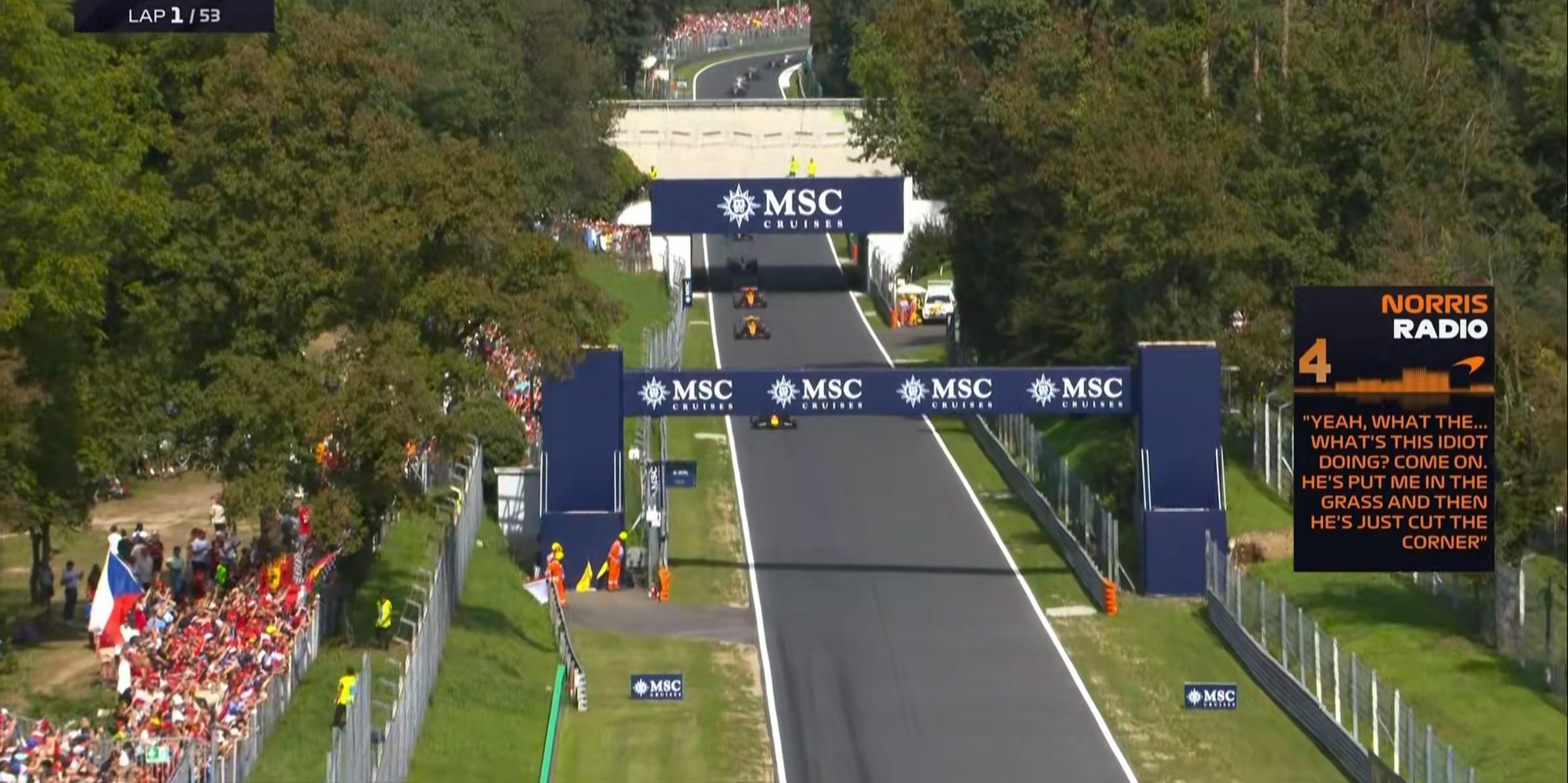 诺里斯在TR中表示维斯塔潘需要归还位置,后者直接切过了2号弯;