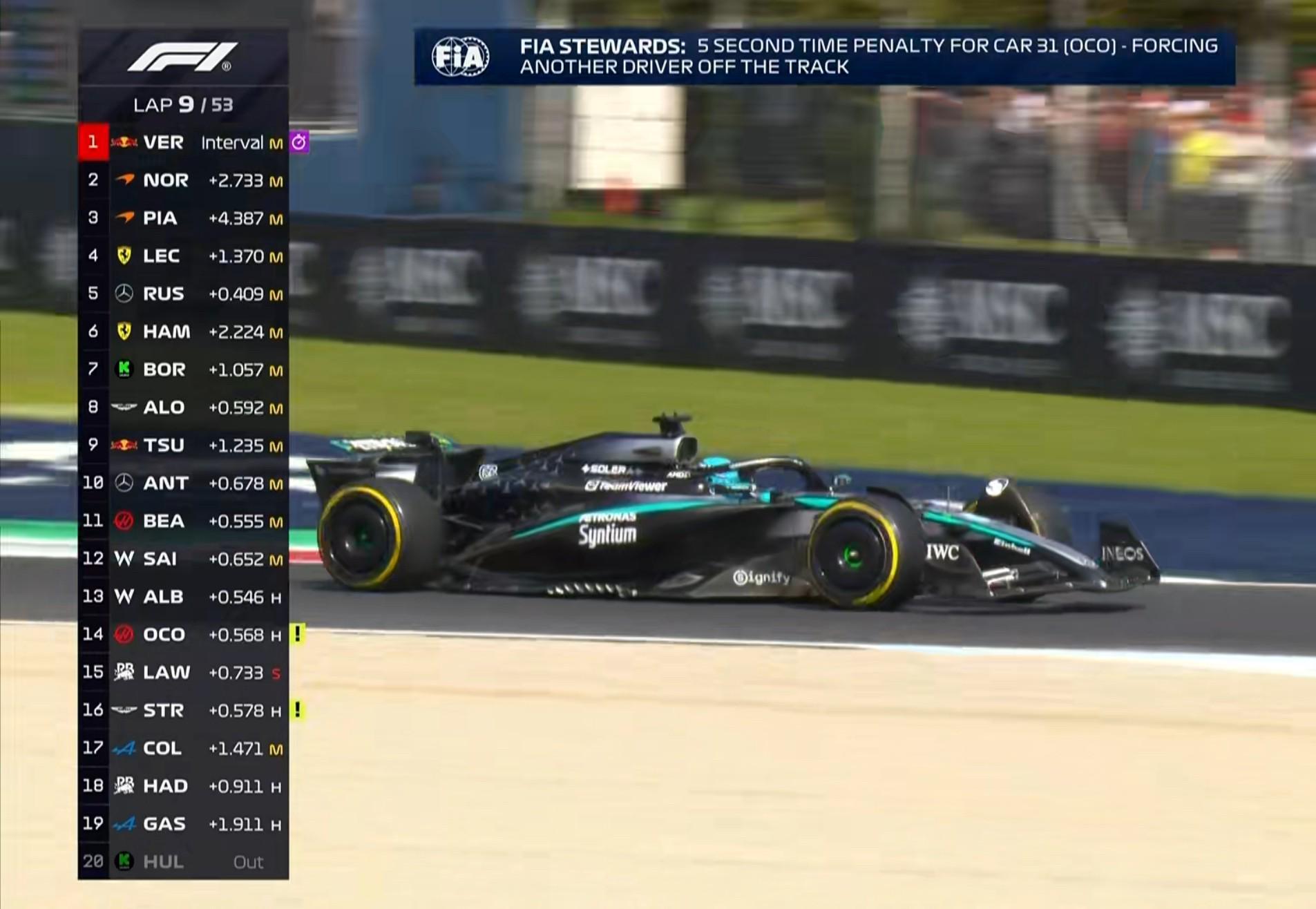 第9圈:奥康因迫使其他车手离开赛道被罚时5秒 !