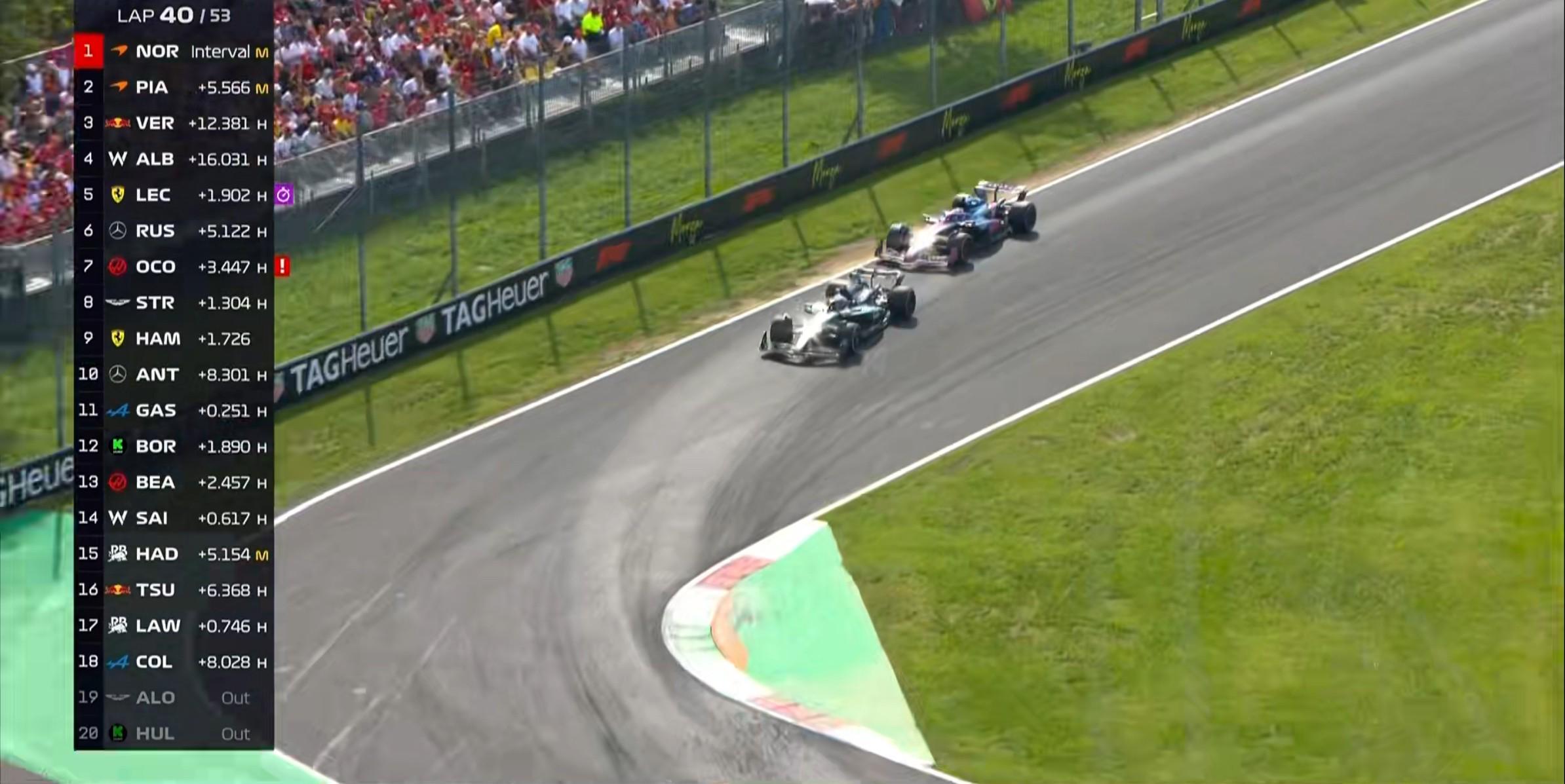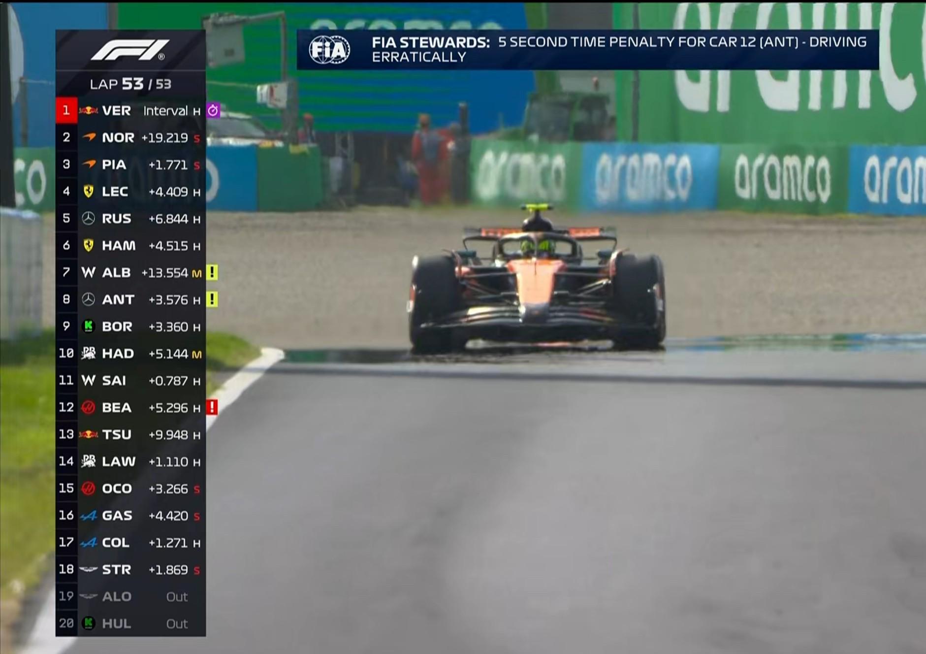 第53圈:安东内利因不安全驾驶被罚时5秒!